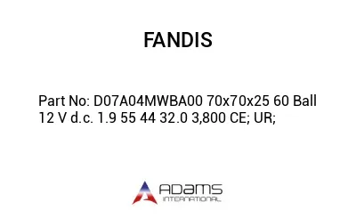 Description: FANDIS - D07A04MWBA00 70X70X25 60 BALL 12 V D.C. 1.9 55 44 32.0 3,800 CE; UR;